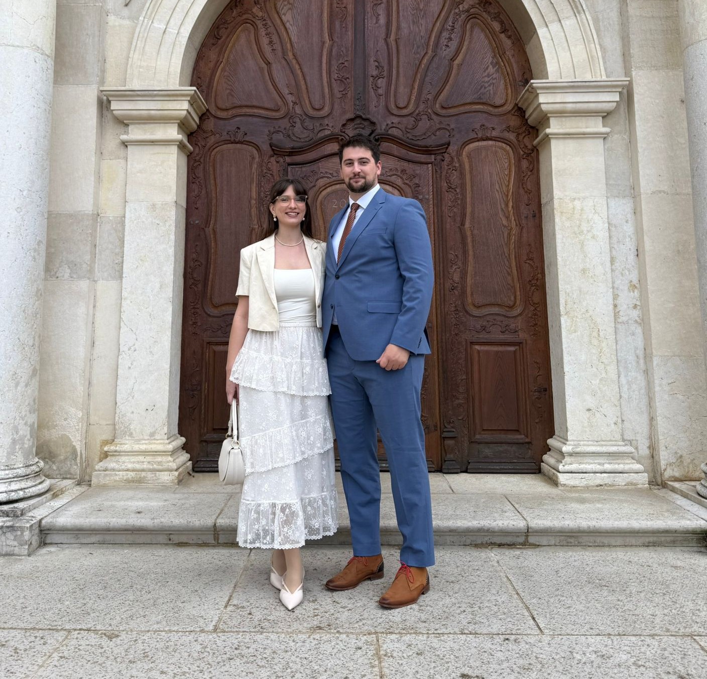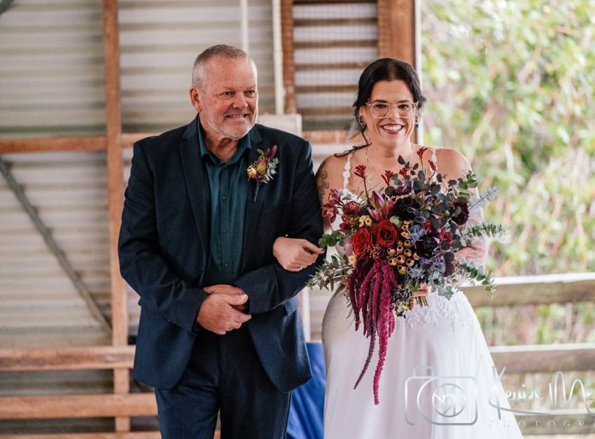 Father, hand on stone assisting stone laying as pricipal bricklayer